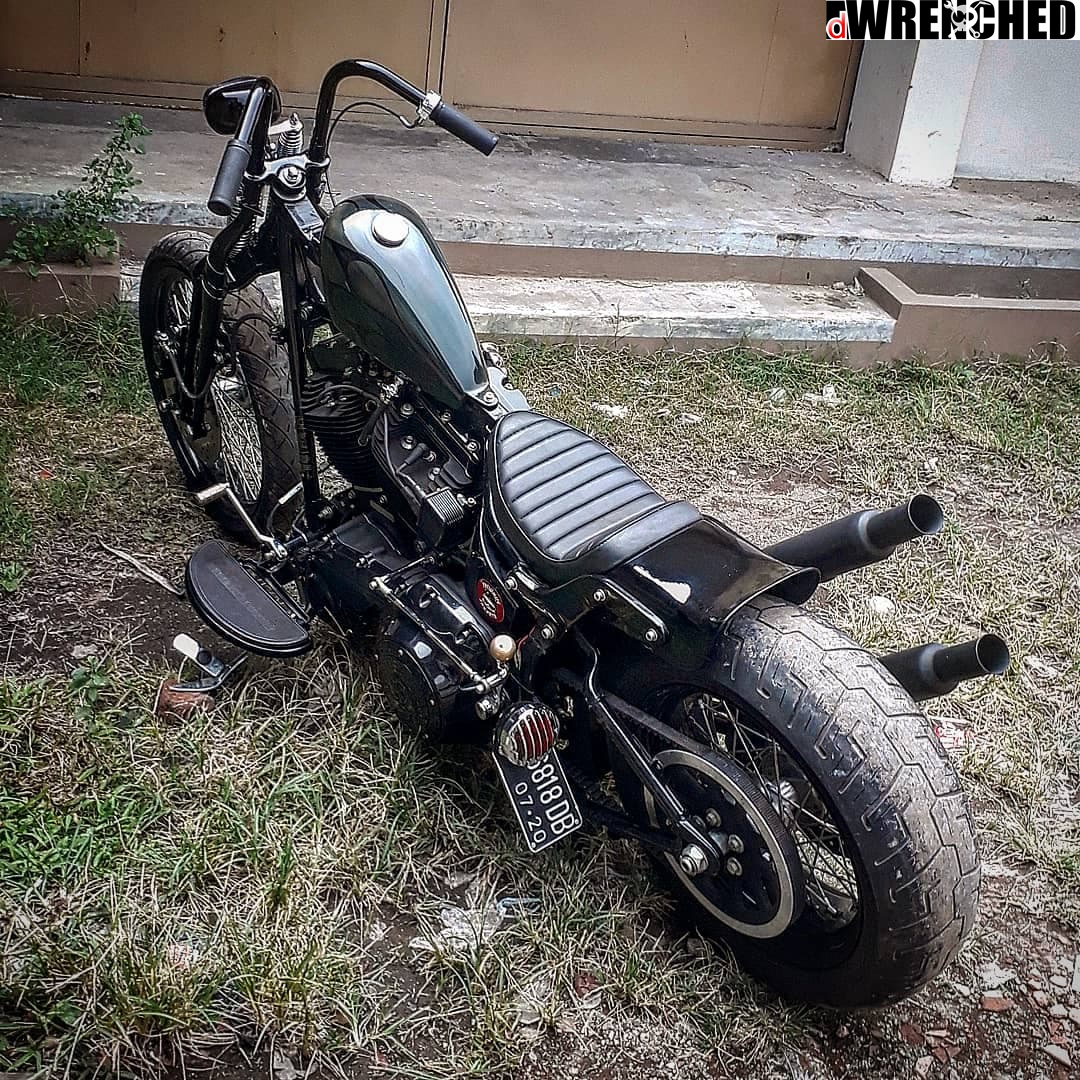 Changed the stock parts with a Peanut Harley gas tank, a ducktail rear fender and a rabbit ears styled handlebars too.